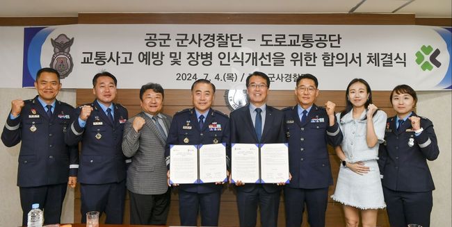 도로교통공단(이사장 직무대행 서범규)은 4일(목) 계룡대 공군 군사경찰단 회의실에서 공군 군사경찰단(준장 류연주)과 「교통사고 예방 및 장병 인식개선」을 위한 업무협약을 실시했다.