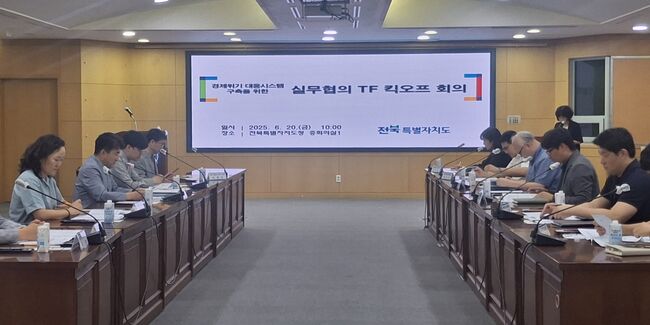 전북특별자치도는 20일 도청 중회의실에서 한국은행 전북본부, 호남지방통계청 전주사무소 등 9개 유관기관과 함께 『경제위기 대응 시스템 구축을 위한 실무협의 TF 킥오프 회의』를 개최했다.