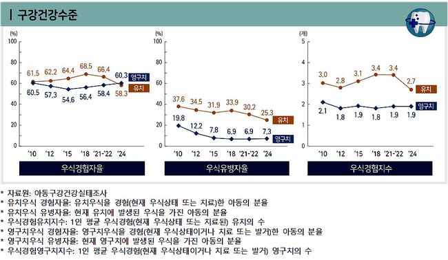 • 유치는 개선 추세지만 영구치 건강은 정체…칫솔질·식습관 개선 시급