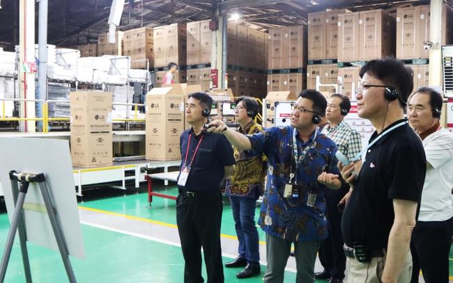LG전자와 협력사 임직원들이 LG전자 인도네시아 땅그랑 생산공장을 함께 살펴보며 생산성 개선을 위한 방안을 논의했다.