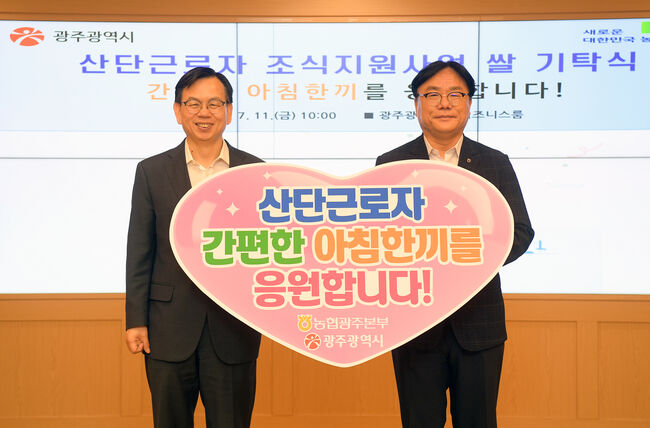 광주광역시(시장 강기정)는 농협중앙회 광주지역본부가 산단 근로자들의 조식 지원을 위해 쌀 20㎏ 100포대(총 2t)를 기탁했다고 11일 밝혔다.