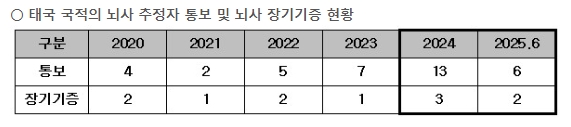 최근 국내에 거주하는 태국 국적자의 수가 약 20만 명에 이르고, 이들 중 뇌사 추정자 및 장기기증 사례가 증가함에 따라, 기증 절차 과정에서의 가족관계 확인 및 기증 동의서 작성 등의 절차를 지원받기 위해 한국장기조직기증원은 주한 태국대사관과 협력해 왔다.