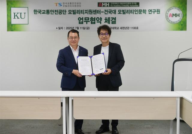 건국대학교 모빌리티인문학 연구원(원장 신인섭)은 지난 7월 11일 한국교통안전공단 모빌리티지원센터(센터장 하재도)와 업무협약(MOU)을 체결하고, 모빌리티 관련 정책 홍보와 학술 교류 전반에 걸친 협력 체계를 구축하기로 했다.