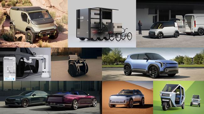 기아의 △PV5 위켄더(WKNDR) 콘셉트는 자유로운 아웃도어 라이프스타일을 제시하는 다목적 EV 밴이다. 모듈형 콘셉트 적용으로 실내외를 유연하게 변경할 수 있으며, 태양광 패널 등 자체 에너지 솔루션을 장착해 고객에게 지속가능한 여정을 제시한다. 또한 리프트업 가능한 차체와 오프로드 타이어는 험준한 지형에서도 역동적인 주행을 가능하게 한다.