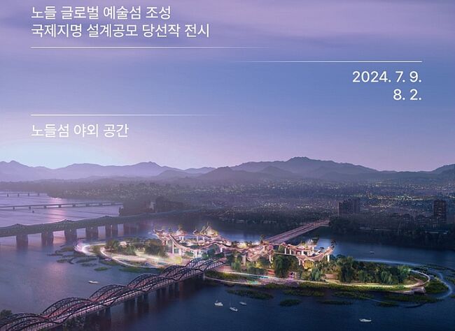 서울시는 노들 글로벌 예술섬 조성사업의 방향을 시민들과 공유하기 위해 "노들 글로벌 예술섬 조성 국제지명 설계공모 당선작 전시"를 노들섬 야외공간에서 '24. 7. 9.(화) ~ '24. 8. 2.(금)까지 개최한다.
