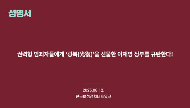 <성명서> 권력형 범죄자들에게 ‘광복(光復)’을 선물한 이재명 정부를 규탄한다!