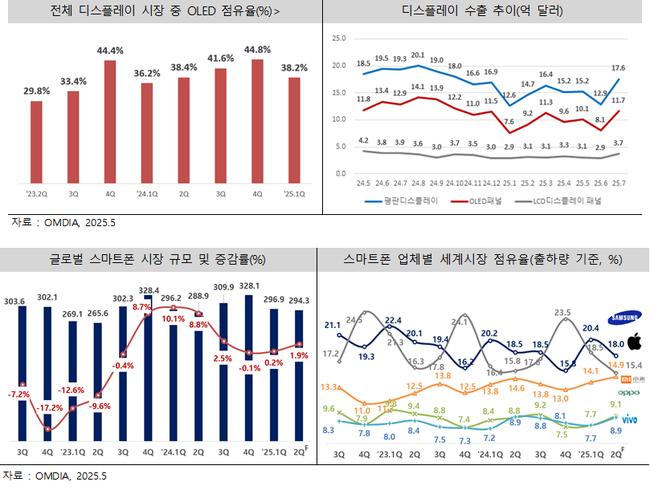 수입은 반도체(9.2%↑), 휴대폰(19.3%↑), 컴퓨터·주변기기(15.6%↑)가 증가세를 보였다. 특히 AI 수요 확대로 데이터센터용 GPU 수입은 전년 대비 749.7% 급증했고, 중대형컴퓨터 수입도 39.9% 증가했다. 반면, 디스플레이(-11.1%)와 통신장비(-14.1%) 수입은 줄었다.