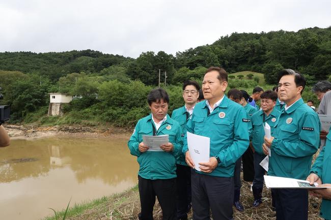 이상민 행정안전부 장관은 7월 10일(수) 전날 내린 집중호우로 제방 붕괴 및 주택 침수 피해를 입은 부여군 구교 저수지를 방문해 현장 상황을 점검하고, 수해를 입은 주민들의 애로사항을 청취했다.