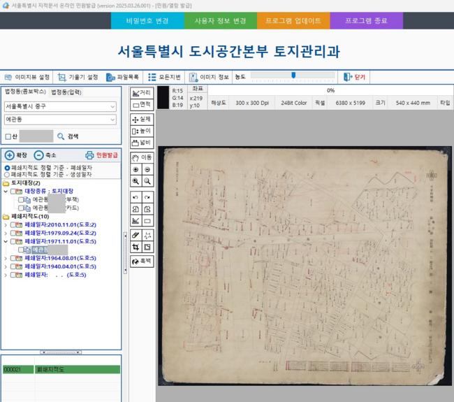 한편 시는 올해 서울기록원에 보관 중인 토지기록물 44만 건의 디지털화를 시작으로, 내년에는 2차 사업을 통해 56만 건을 추가 전산화한다. 앞서 시는 지난 ’22년 흑백(저해상도)으로 저장돼 식별이 어려웠던 33만 건의 자료를 고화질 컬러로 개선해 행정 활용도를 높였다.