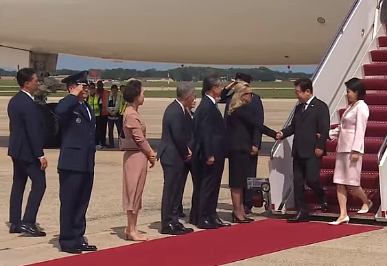 의전홀대인가?...李대통령 공항 도착...美관리 1명 영접