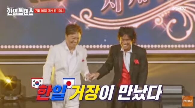 오는 16일 한일 양국의 명예를 건 한국의 국민가수 남진과 일본의 국민가수 마츠자키 시게루 특집이 방송된다. 1970년대 한국 가요계 아이콘으로 불리는 남진과 일본의 디너쇼 킹으로 꼽히는 마츠자키 시게루, 두 가인(歌人)의 역사적 공연이 이뤄진다.