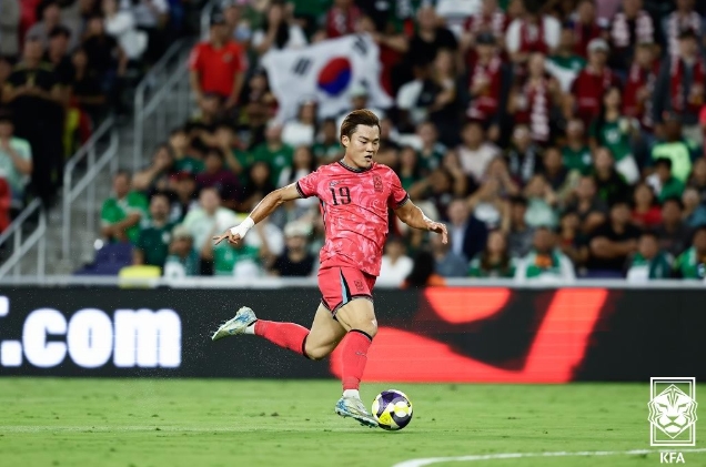 북중미 강호 '멕시코'와 2:2 기록...골을 넣은 오현규의 드리블 모습