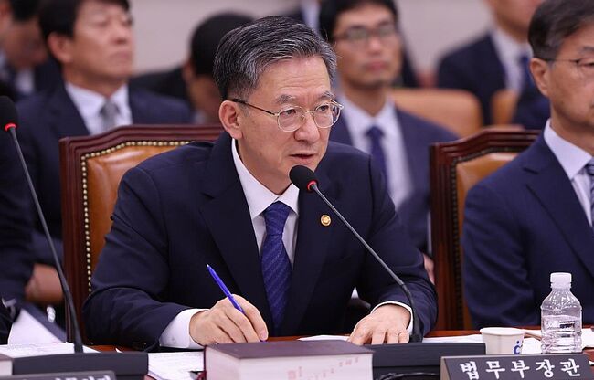 이날 더불어민주당 전현희 의원이 “특검 수사에서 국민의힘이 내란죄에 동조한 정황이 드러날 경우 법무부가 위헌정당 해산을 청구할 것이냐”고 묻자, 정 장관은 “결과가 나오면 검토하겠다”고 답했다.