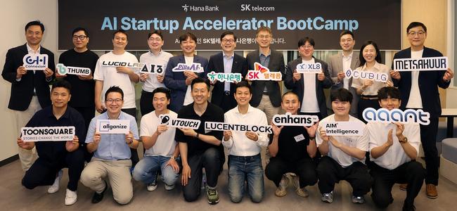 하나은행(은행장 이승열)은 지난 16일 SK텔레콤(대표 유영상)과 서울 강남구에 위치한 스파크플러스 코엑스점에서 AI 유망 스타트업을 위한 `AI 스타트업 엑셀러레이터 2기` 최종 선발 및 발대식 행사를 진행했다고 밝혔다.
