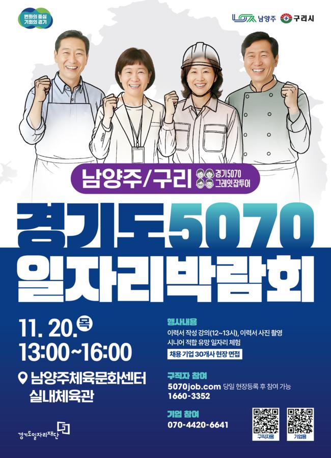 경기도와 경기도일자리재단이 11월 20일 남양주체육문화센터에서 ‘경기도 5070 일자리박람회 in 남양주+구리’를 개최한다.