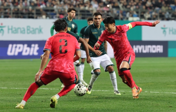 14일, 손흥민 골 힘입고 볼리비아를 상대로 2-0 승리를 거둔 한국 팀
