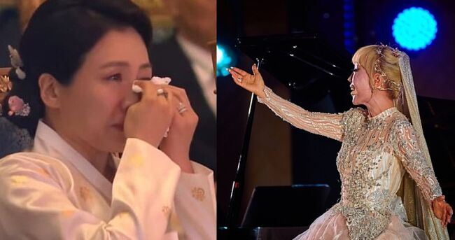 UAE 문화행사 중 소프라노 조수미의 노래 듣고 눈물을 흘리는 김혜경 여사 모습...선화여고 선후배 사이