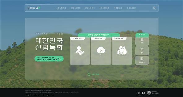 아울러, 민둥산에서 푸른 산으로 변화하는 산림의 모습을 시각적으로 선명하게 구현했다. 주요 사안을 시간 흐름에 따라 연표로 구성하여 산림녹화 전반에 대한 이해도를 높이고, 모바일 이용 증가에 맞춘 화면 설계를 통해 이용자 접근성과 편의성을 한층 강화했다.