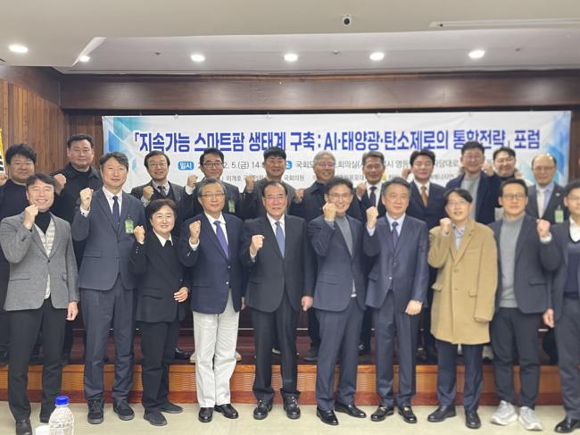 더불어민주당 이개호 국회의원(전남 담양·함평·영광·장성)은 5일 오후 서울 여의도 국회도서관 소회의실에서 ‘지속가능 스마트팜 생태계 구축, AI·태양광·탄소제로의 통합전략 포럼’을 개최했다. 이번 포럼은 이개호, 문금주, 이소영 국회의원이 공동 주최하고 국립목포대학교, 전라남도, 녹색에너지연구원이 주관했다.