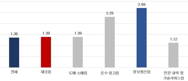 • 정보통신업 2.69배로 효과 가장 커…제조업도 1.39배