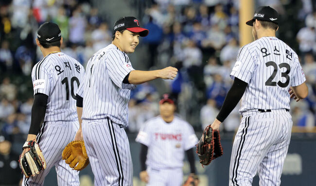 임찬규는 PO 1,2차전에서 홈런 8개를 쏘아 올리며 총 20점을 생산했던 삼성 타선에 단 한 점도 허락하지 않았고 이어 '필승 카드' 에르난데스가 두 번째 투수로 출격해 삼성 타선을 잠재웠다.