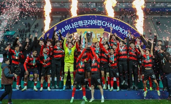 ‘2024 하나은행 코리아컵 결승전’에서 포항 스틸러스가 ‘K리그1 챔피언’ 울산HD를 꺾고 코리아컵 역대 최다 6번째 우승을 달성했다.