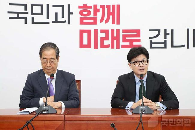 한 대표는 이날 윤석열 대통령의 대국민 담화를 본 뒤 총리공관을 찾아 약 1시간 20분간 회동했다. 회동에는 방기선 국무조정실장과 박정하 국민의힘 당대표 비서실장이 배석했다.