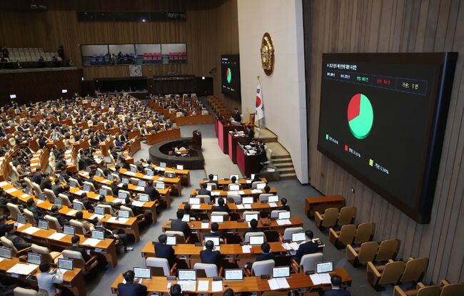10일 요동치는 계엄 정국 격랑속에서 국회는 본회의에서 총지출 673조3000억원 규모의 내년도 예산안을 재석 278명 중 찬성 183표, 반대 94표, 기권 1표로 의결했다.