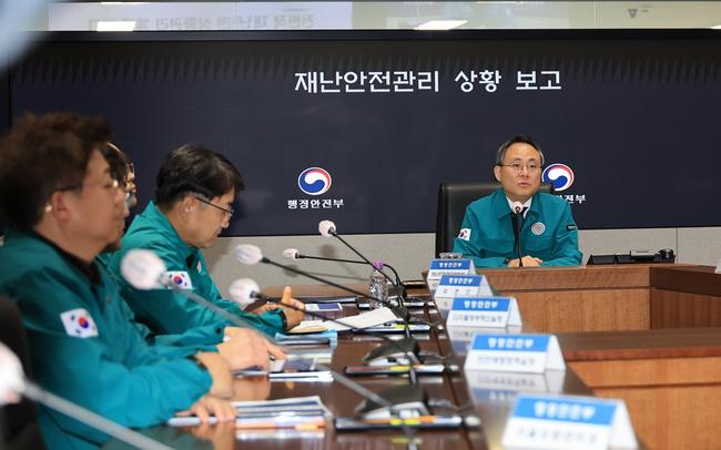 행정안전부장관 직무대행 고기동 차관이 14일 저녁 서울 종로구 정부서울청사 서울상황센터에서 열린 재난안전관리 상황 점검회의를 주재하고 있다.