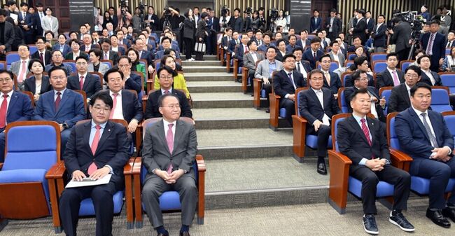 국민의힘 4선 이상 중진들은 "비대위를 조속히 구성할 필요가 있다는 데 의견이 모였고, 당의 안정과 화합, 쇄신을 위해 경험 많은 당내 인사가 적격이다"며 가닥을 잡은 것으로 보인다.