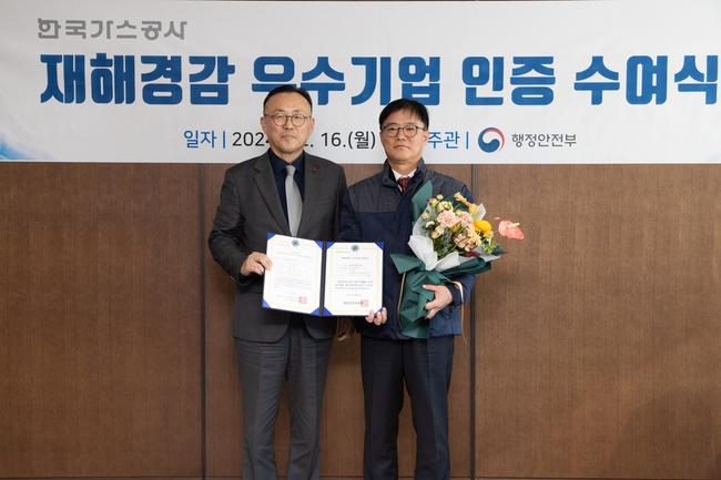 한국가스공사(사장 최연혜)는 지난 16일, 행정안전부가 주관하는 `재해경감 우수기업 인증`을 재획득하고 이한경 행정안전부 재난안전관리본부장으로부터 인증서를 수여받았다고 17일 밝혔다.