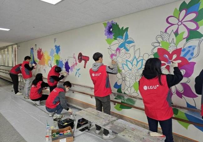 도서관이 설치된 학교에는 아이들이 희망찬 꿈을 꿀 수 있도록 LG유플러스 임직원들이 봉사활동으로 벽화를 그리는 활동도 함께하고 있다.