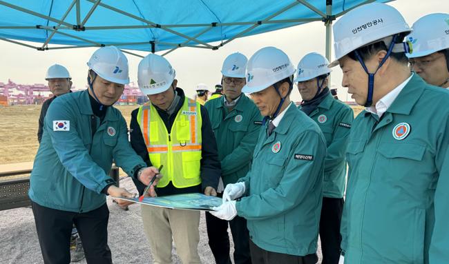 송명달 해양수산부 차관은 1월 16일(목) 설 명절을 앞두고 인천 신항을 찾아 완전자동화터미널 건설현장 안전을 점검하고 건설 근로자들을 격려했다.