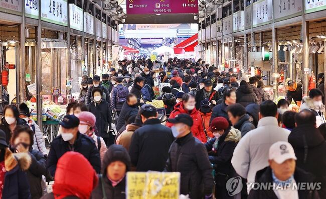 추운 날씨에도 아랑곳하지 않고 재래시장에서 장을 보는 시민들 <연합뉴스 자료사진>