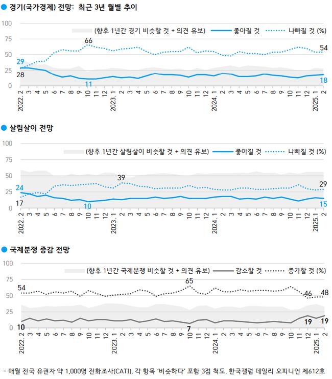 • 경기 전망 ‘나빠질 것’ 54% vs ‘좋아질 것’ 18%… 살림살이 전망도 부정적