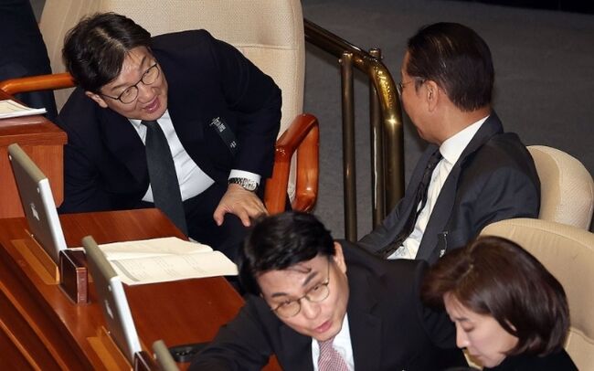 권 원내대표는 "정치인이 자기 소신이 없으면 진보도 아니고 보수도 아니"라며 "그저 기회주의자의 사기 행각일 뿐"이라고 말했다.