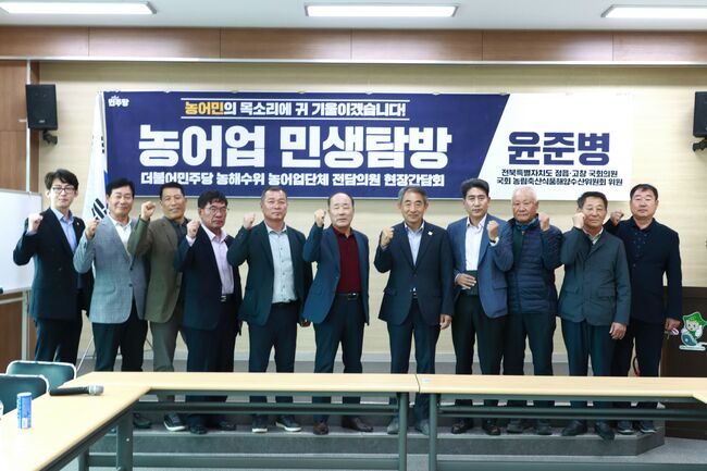 이번 간담회는 더불어민주당 소속 농림축산식품해양수산위원회 의원들이 진행하는 ' 찾아가는 농어업 민생탐방 ' 의 일환으로 농어업인들의 목소리를 현장에서 직접 듣고 제도적 개선으로 이어가기 위한 노력의 일환이다 윤준병 의원은 앞으로도 어촌계와의 지속적인 소통을 통해 어촌 현장의 애로사항을 해결해 나가겠다는 의지를 밝혔다 .