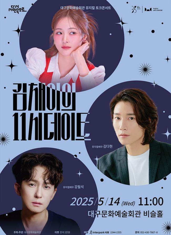 대구문화예술회관이 선보이는 뮤지컬 토크 콘서트 ‘김채이의 11시 데이트’가 오는 5월 14일(수) 오전 11시, 대구문화예술회관 비슬홀에서 열린다.