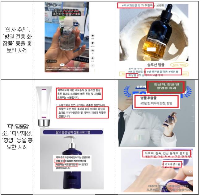 식품의약품안전처는 대한화장품협회와 함께 온라인에서 유통·판매되는 화장품 광고를 전수 조사한 결과, 「화장품법」 제13조를 위반한 부당 광고 237건을 적발했다고 23일 밝혔다.