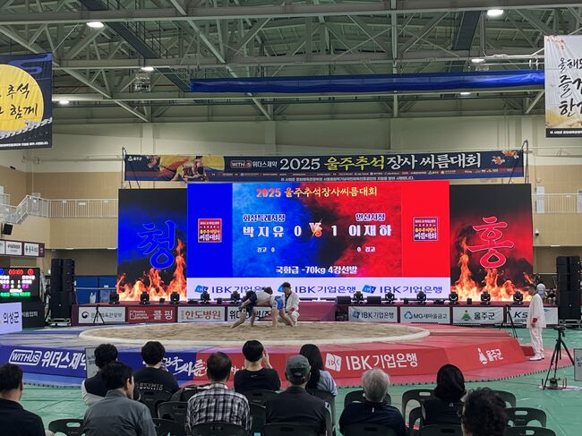 울산 울주군에서 3년 만에 열리는 전국 씨름대회 ‘위더스제약 2025 울주추석장사씨름대회’가 2일 삼남읍 울주종합체육센터에서 성대한 막을 올렸다.