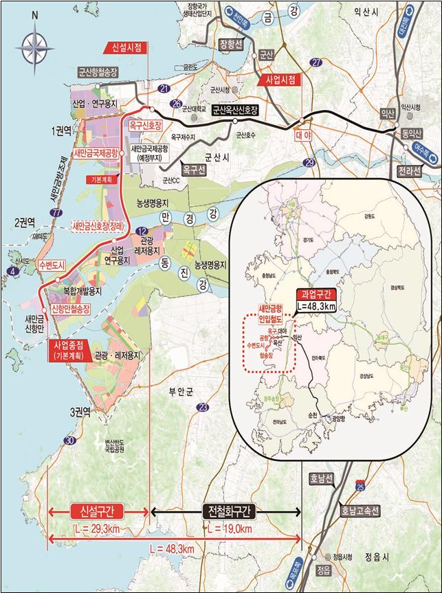 * (노선계획) 신설 29.3km, 기존 군산항선 개량 19.0km