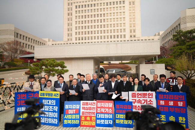 • “ 대법원 앞 ' 김용 사건 대법원 신속 판결 ' 촉구 기자회견 , 촉구의견서 제출