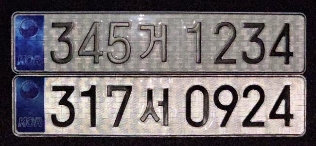 필름식번호판은 ’17년 전기자동차에 최초 도입하고 ’20년 일반자동차에 확대 도입하였다. 국가상징 문양 및 국가축약문자, 홀로그램 등의 디자인 적용으로 위·변조 방지효과가 있으며, 재귀반사식 필름 적용으로 야간 시인성이 높은 장점이 있다.